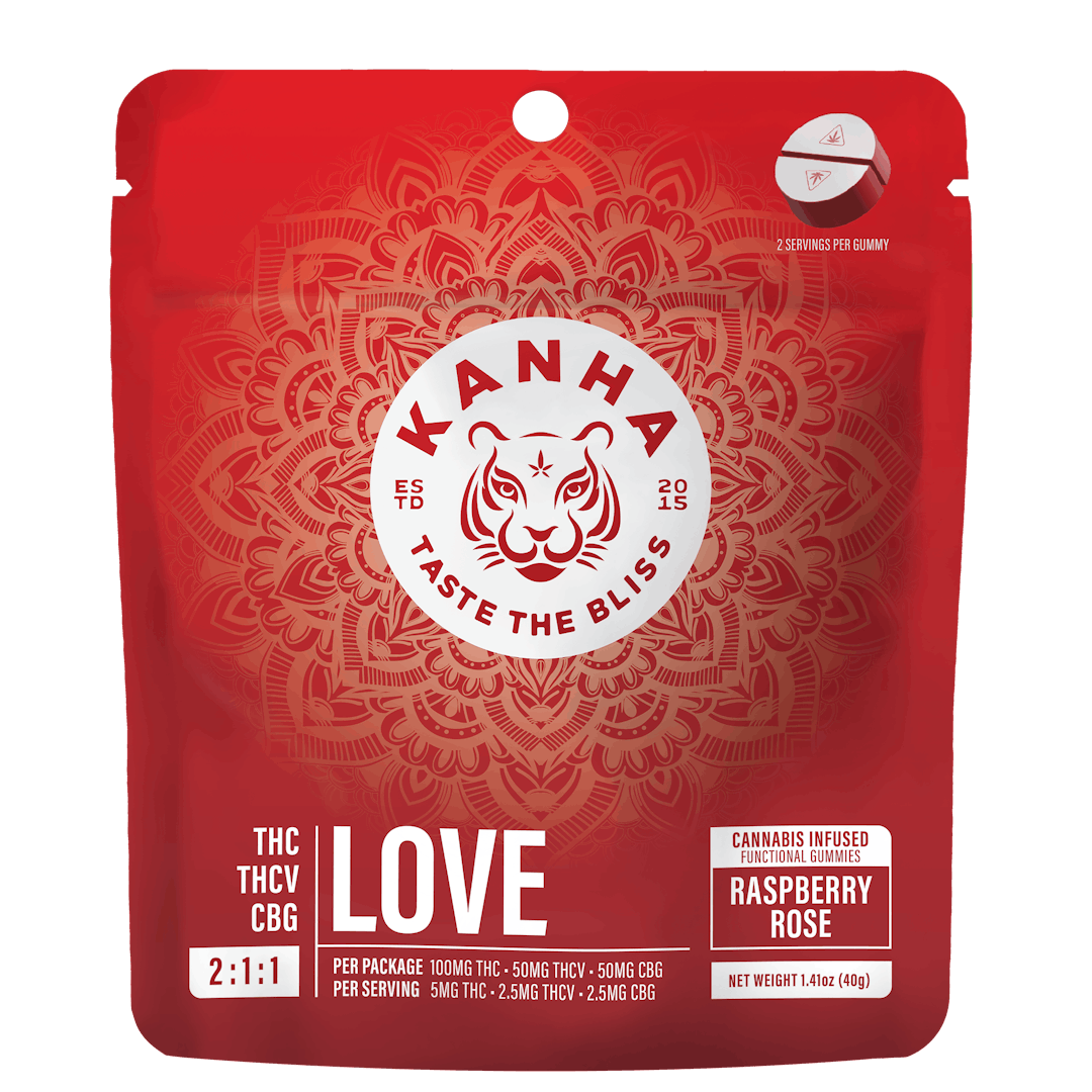 Our LOVE gummy combines the delicious flavors of Raspberry and Rose with a perfectly formulated 2:1:1 threesome of THC, CBG and THCV. Enhanced with Damiana extract which may improve arousal and stamina, experience deep euphoria and amplified arousal in every bite.